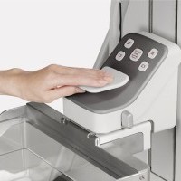 - alla paziente, mediante un controllo automatico della mitigazione della forza di compressione che riduce i fastidi connessi alla stessa e con un controllo intelligente dell'esposizione in grado di modulare la dose radiogena sulla effettiva struttura del seno, unico per ogni paziente. La colonna del sistema è stata riprogettata per ridurre l'ingombro visivo/fisico: il risultato è un sistema snello, che riduce gli elementi all'interno della sala di esame (nella colonna sono alloggiati anche l'elettronica e il generatore) e quindi il senso di oppressione tipico dei sistemi analoghi sul mercato, favorendo le condizioni per un esame confortevole. Anche l'aspetto dell'umanizzazione del mammografo e della console di acquisizione sono stati tenuti in giusto conto; l'illuminazione tenue e configurabile dall'utente mitiga la tensione dell'esame.