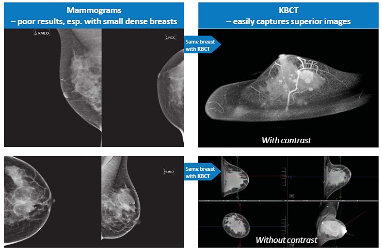 BREAST CT elimina la necessità della compressione, rendendo l'esame riproducibile nel tempo indipendentemente dalle condizioni della paziente e dell'anatomia da trattare